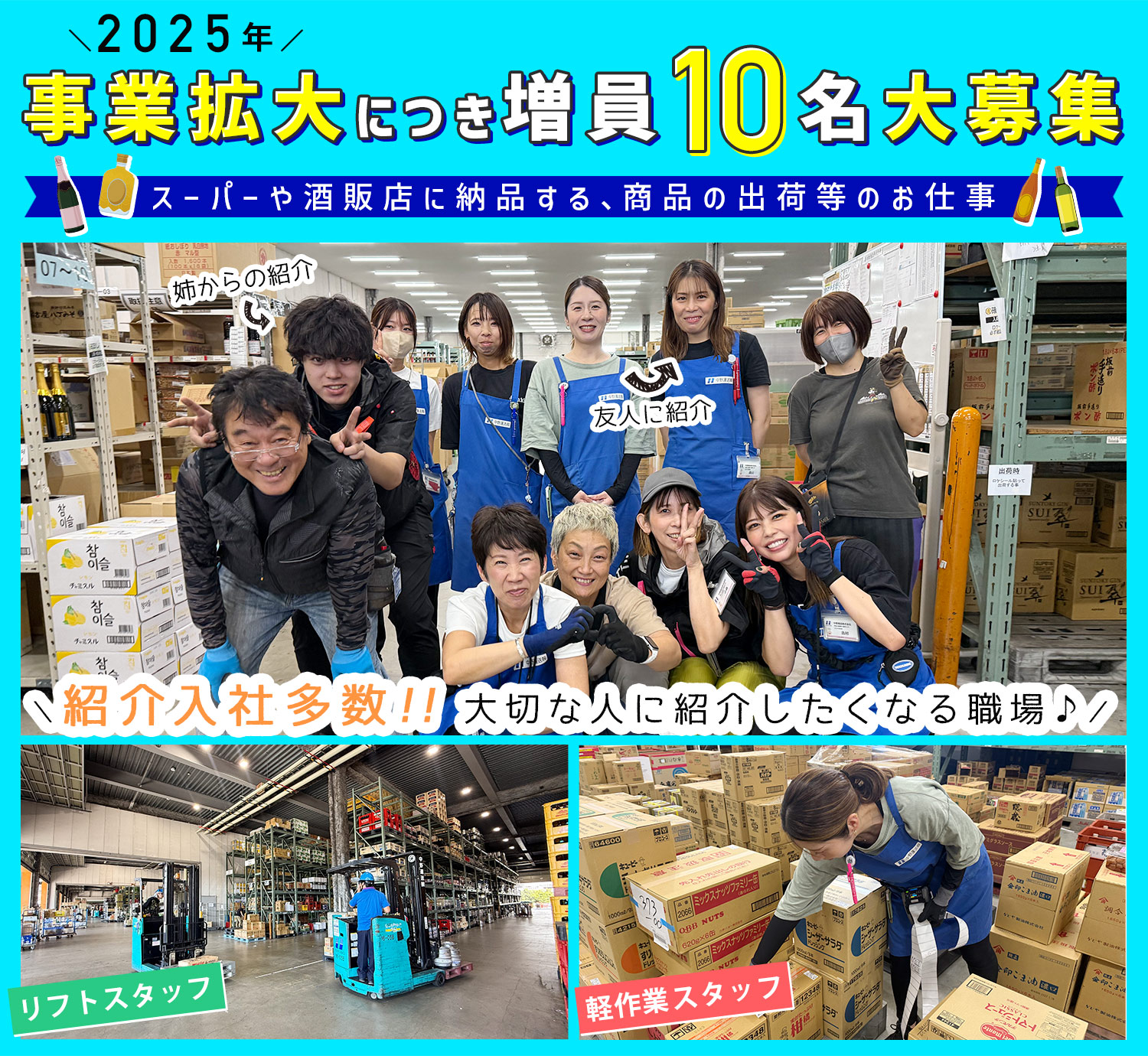 仕事内容 | リフトオペレーター/軽作業などから転職OK [社] フォークリフトを運転し、商品の格納、ピッキング、入出荷作業をお願いします。 ※加工食品や酒類の検品、在庫確認、空容器の片付けなどもお願いします。 |