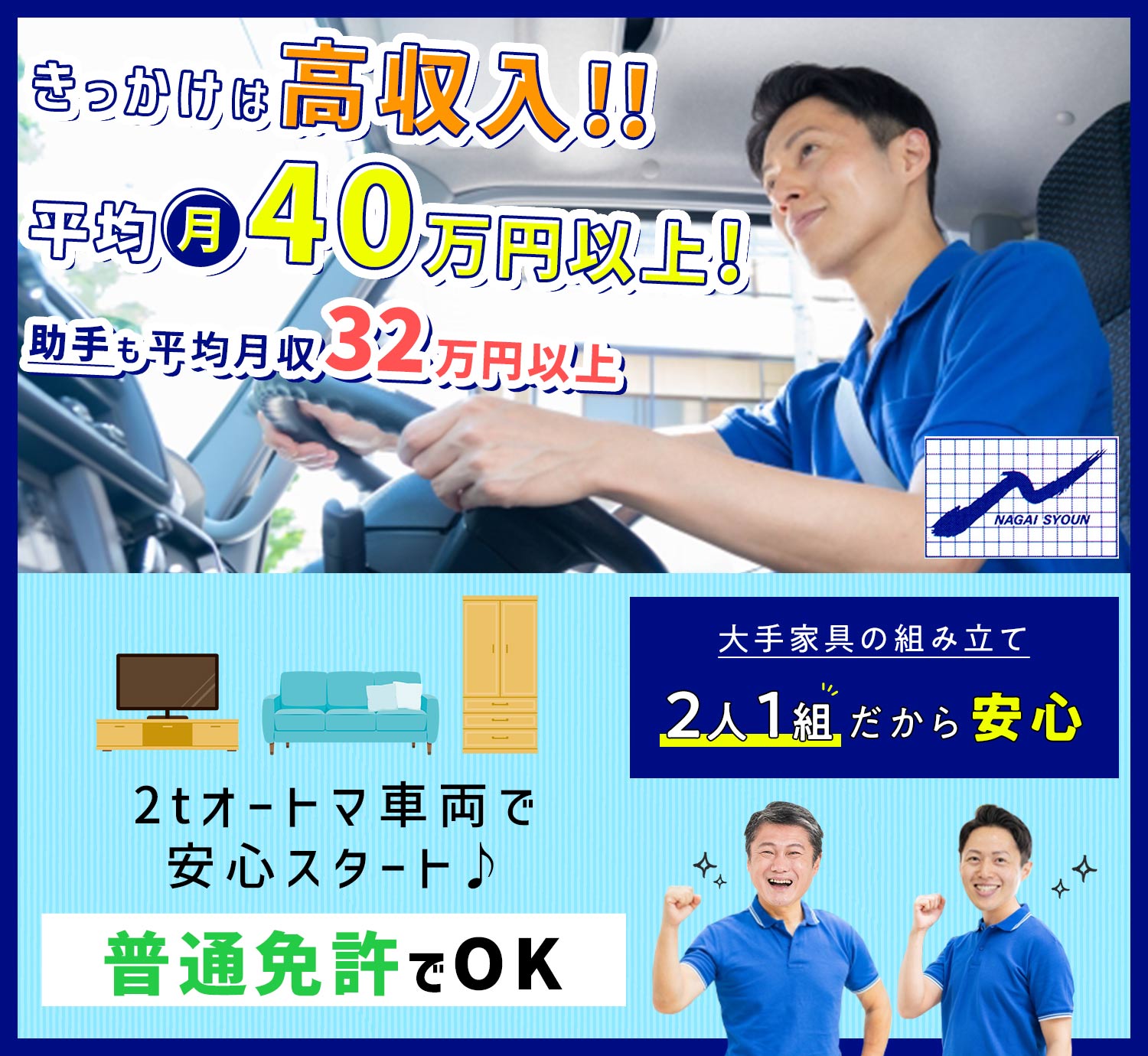 | 待 遇 | #社会保険完備 交通費支給 (全額支給) #車通勤OK、バイク通勤OK(駐車場あり) 健康診断 残業手当 無事故手当 免許取得支援制度 |