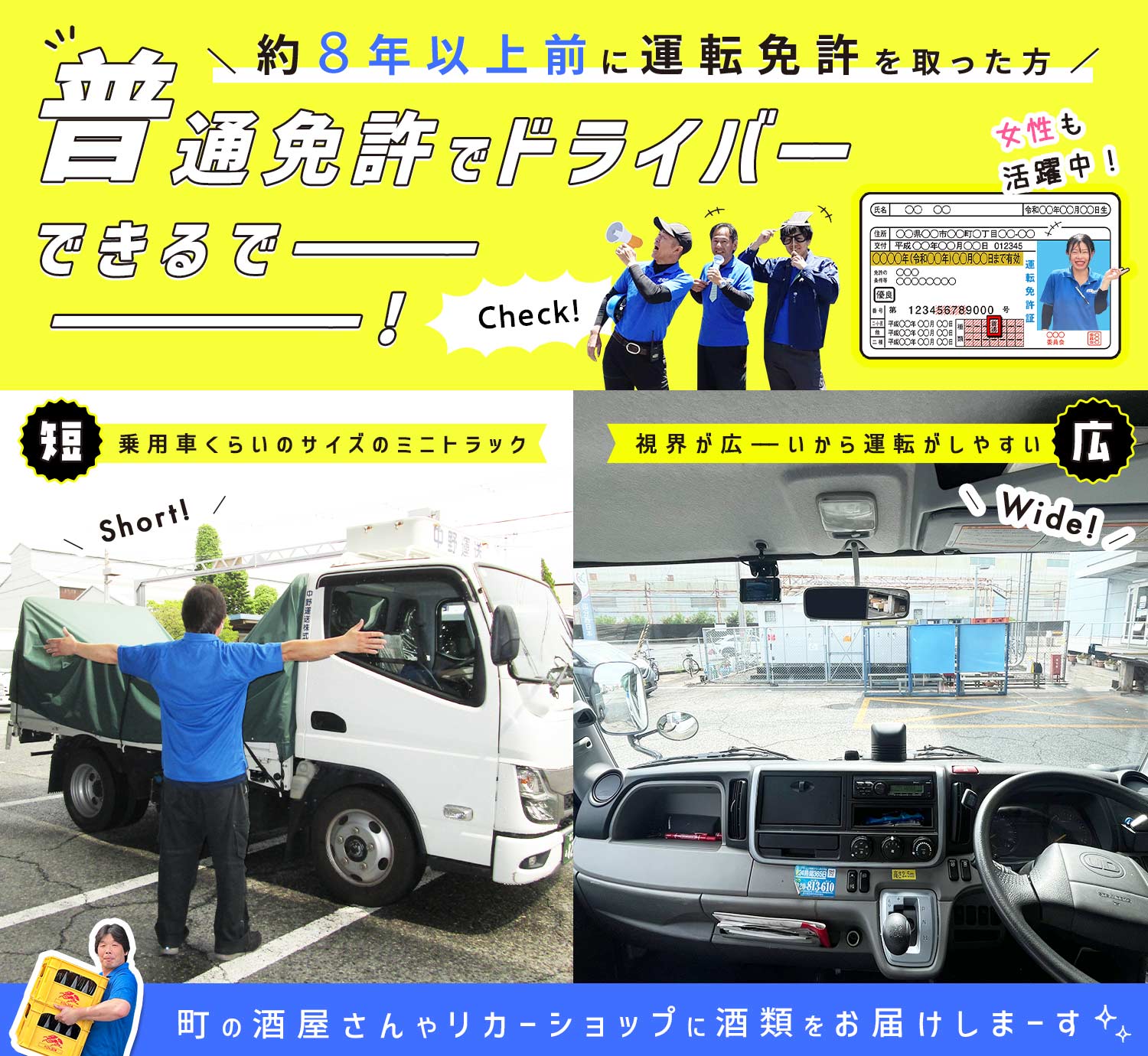 町の酒屋さんや、お酒のディスカウントストアに酒類を届ける仕事。