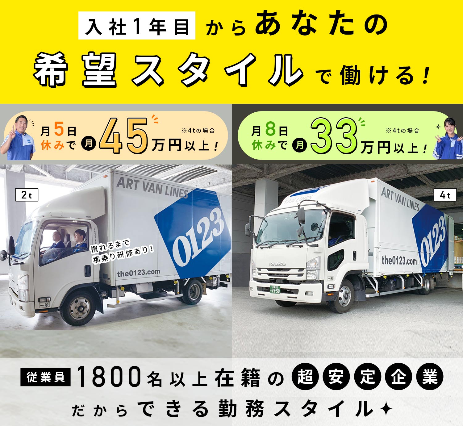 | 給 与 | (1)月給33万円~46万8000円以上 (2)月給31万7000円~37万7000円以上 ※別途、業績給(売上に応じた割増賃金)・家族手当・無事故手当等あり ◆月24日稼働で、(1)月収42万円以上(2)月収34万円以上のドライバーも!(働き方は相談OK) ◆1年目の想定年収600万円! ※試用期間3~12ヶ月(平均3ヶ月)/期間中は契約社員(賞与なし・それ以外は正社員と同条件) ※期間中も【平均月収25~30万円】と安定! |