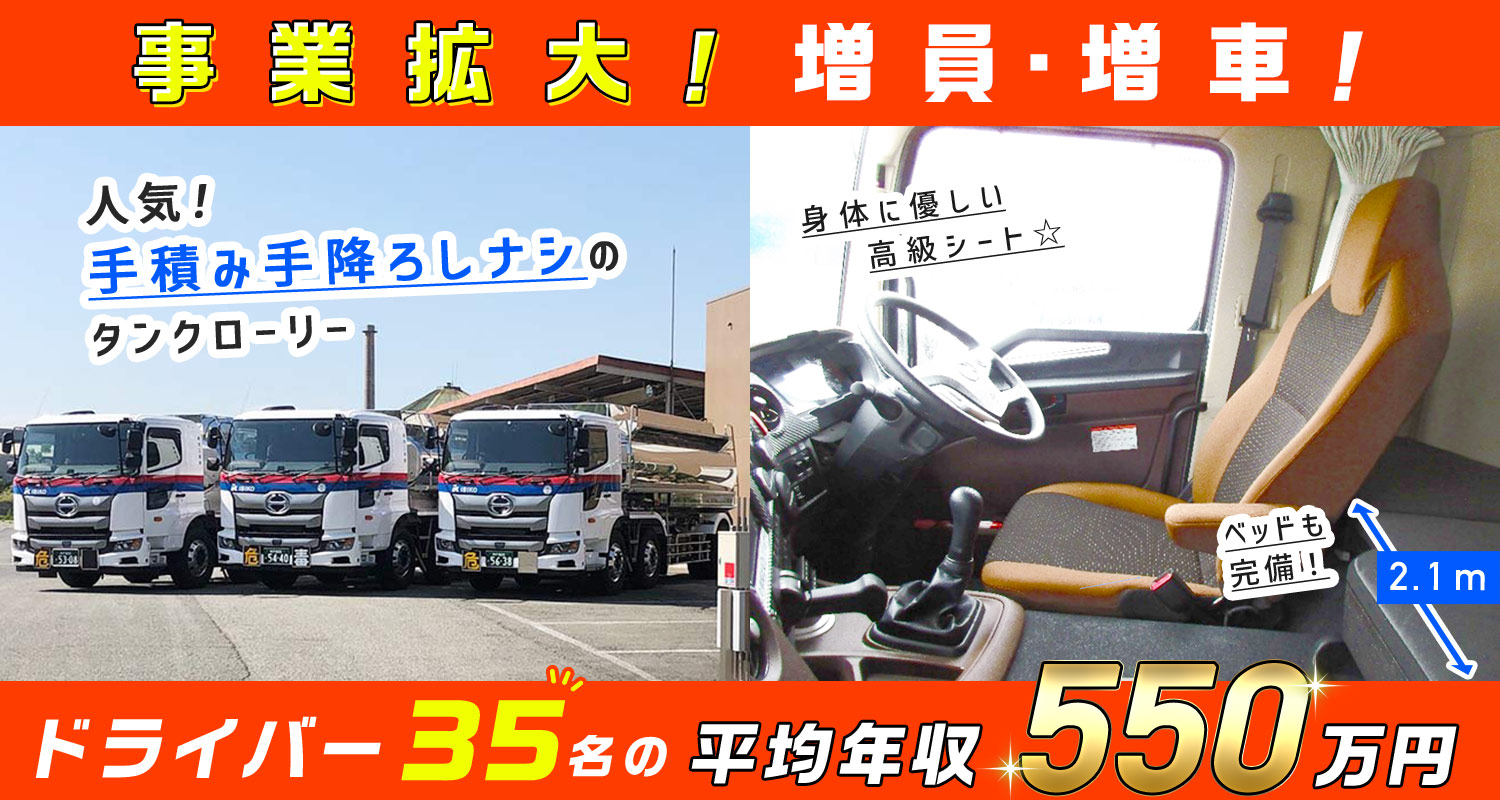 | 職 種 | タンクローリードライバー[社] (大型免許取得見込みの方もOK) |