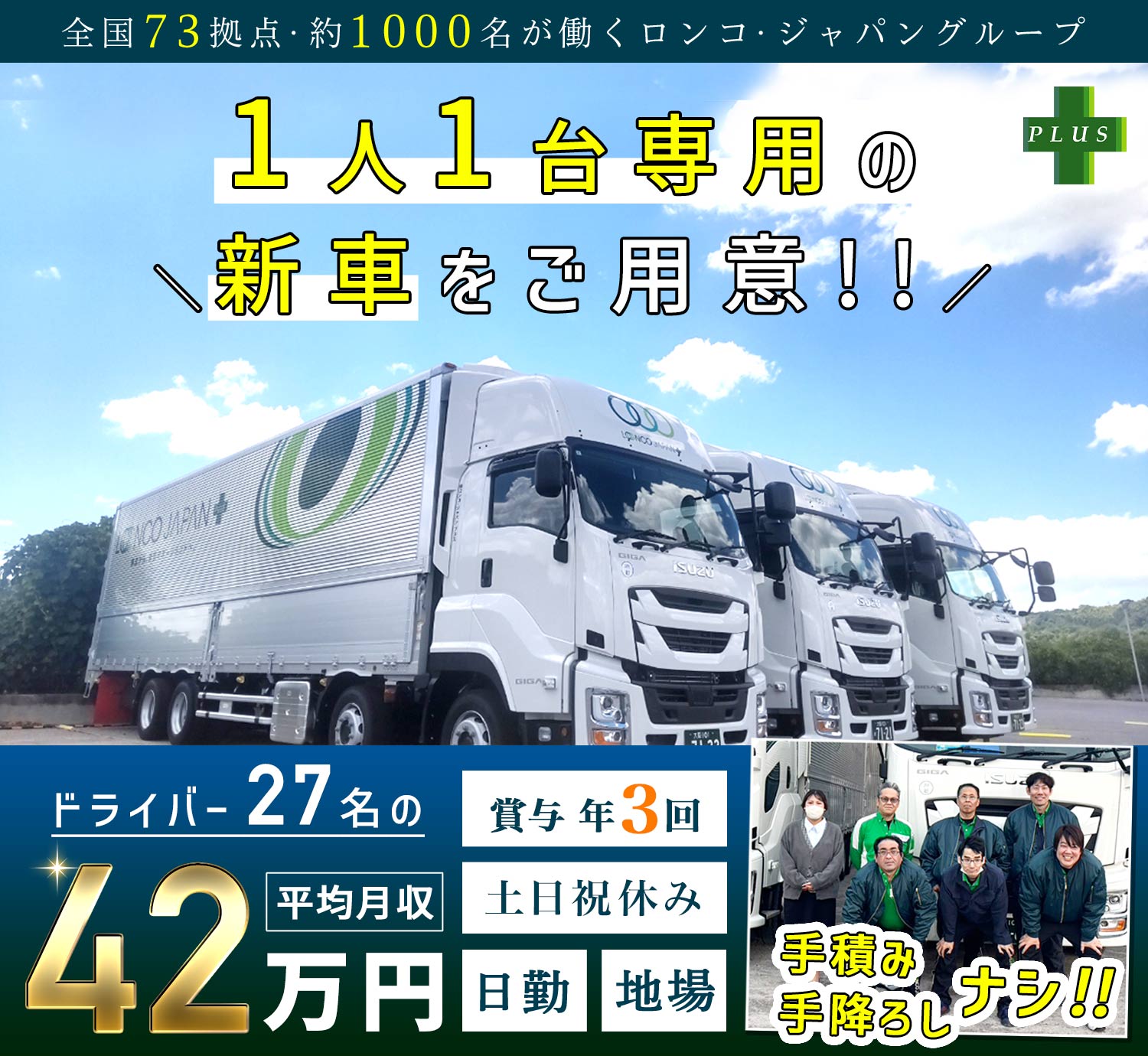 ★ドライバー27名の平均月収は42万円、賞与は年3回!