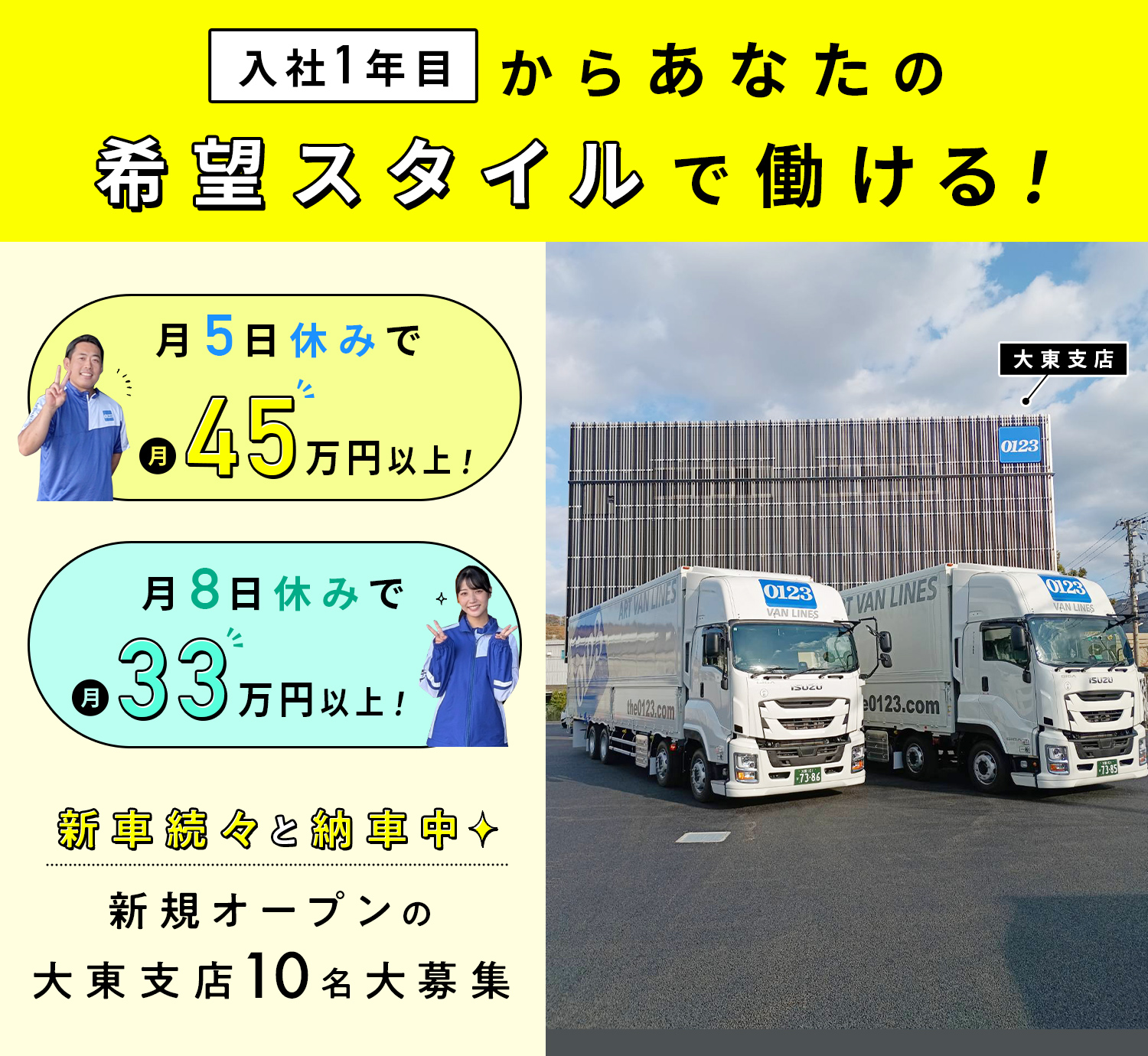 ★月8日休み→月給33万円以上 など!