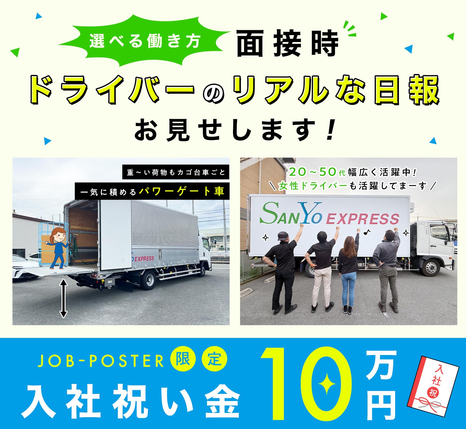 | 応募資格 | 普通自動車免許(AT限定可) ※中型免許取得、限定解除の支援制度あり ※2007(平成19)年6月1日以前に取得の普通自動車免許(MT)をお持ちの方は、そのまま運転可能 ※ドライバー未経験者も大歓迎 ※男女ともに歓迎 |