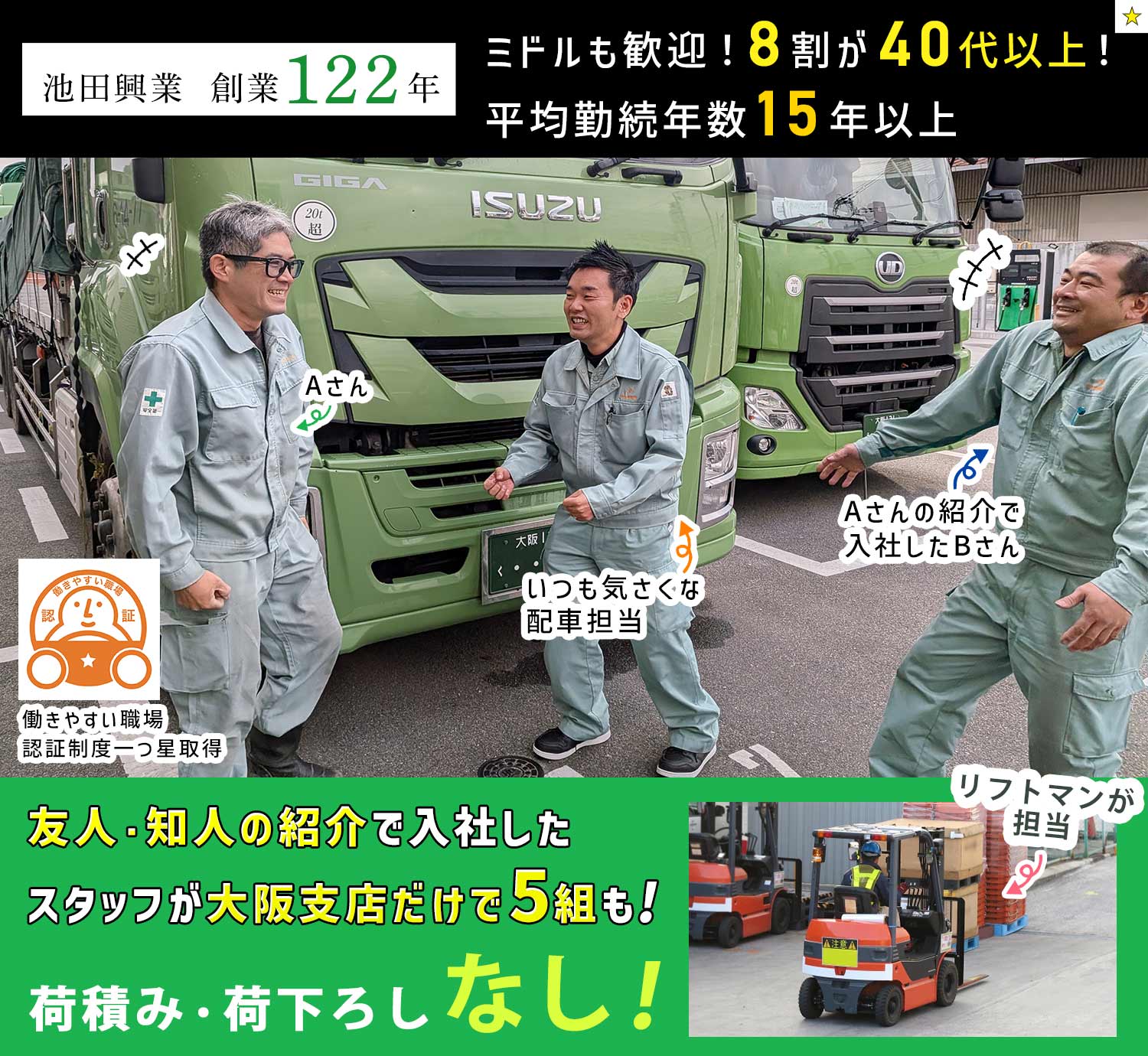 | 待 遇 | #賞与あり 年2回 #昇給あり ※基本年1回 #社会保険完備 交通費規定支給 #車通勤OK (駐車場無料) バイク・自転車通勤OK #制服貸与 家族手当:配偶者2万円、子1人につき1000円 1人1台専用トラック貸与 高速道路利用OK(料金は全額会社負担) 修理費用(全額会社負担) 団体定期保険 財形貯蓄制度 退職金制度 |