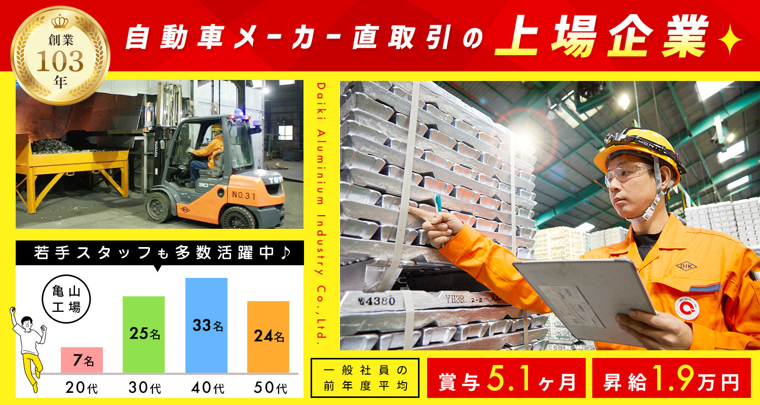 | 会社情報 | 株式会社大紀アルミニウム工業所 亀山工場 |