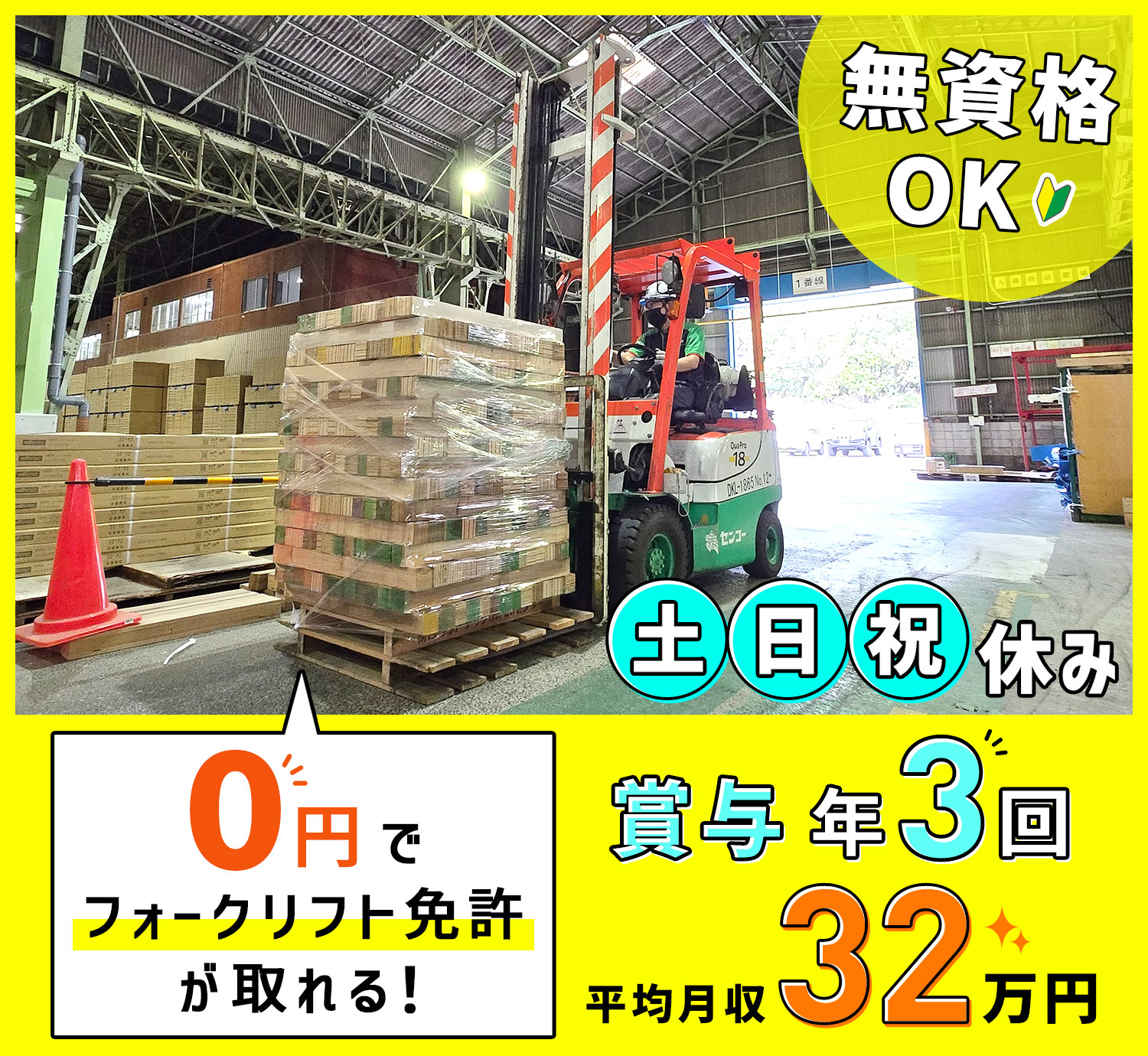 | 応募資格 | 無資格・未経験OK! #ブランクOK ※フォークリフト免許ある方、倉庫作業の経験者も大歓迎! ※軽作業や事務等から転職OK ※学歴・経験・男女不問 ※フリーター、社会人デビュー、第二新卒歓迎 |