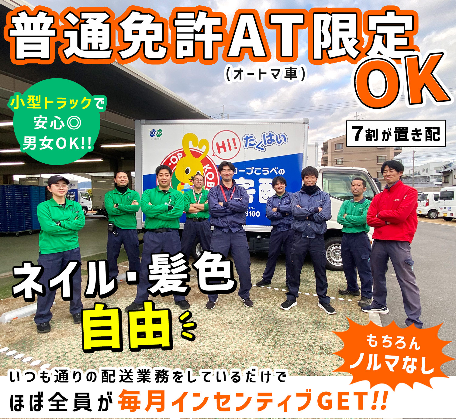 | 職 種 | 男女ミニトラックドライバー/普通免許(AT)OK <組合員様 専属ドライバー> |