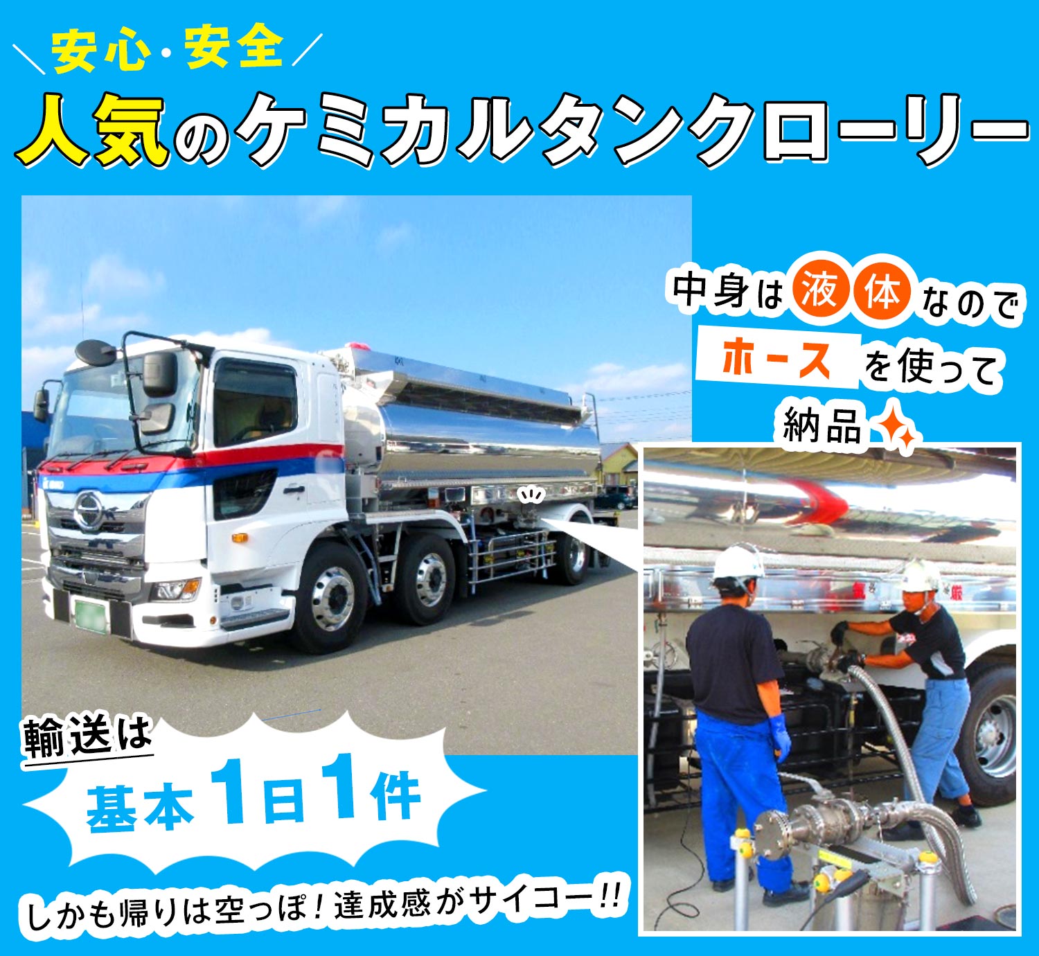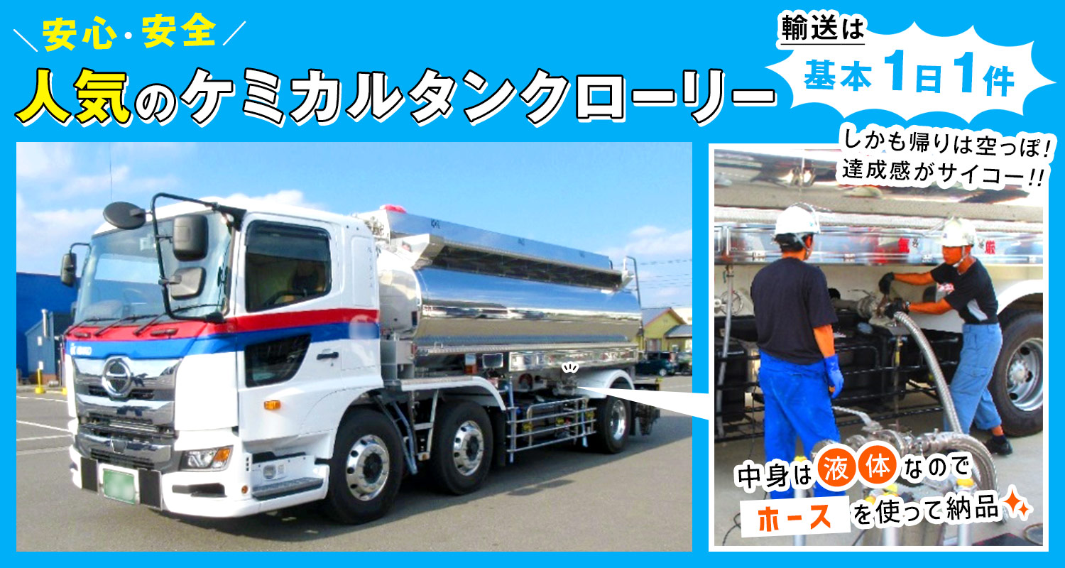 | 仕事内容 | 大型ドライバー/タンクローリー[社] タンクローリーを運転し、関東圏の工場をメインに化学品の輸送業務をお願いします。 ※手積み・手降ろし一切ナシ!さらに復路は、空のまま運転して帰ってくるので、荷積みの負担はありません! ■配送エリア 神奈川県川崎市、茨城県鹿嶋市・神栖市、千葉県市原市・市川市・船橋市など、関東圏への配送がメイン。 ■配送件数 基本的には1日1件 ※稀に2件以上お願いすることもあり ■快適なトラック! 社内はBluetooth完備!シートも、ソファー並みの座りごこちで、身体に優しいと好評!長距離を走る場合も、運転席の後ろにベッドがあるので、高速道路のPAでぐっすり寝ることができます◎ |