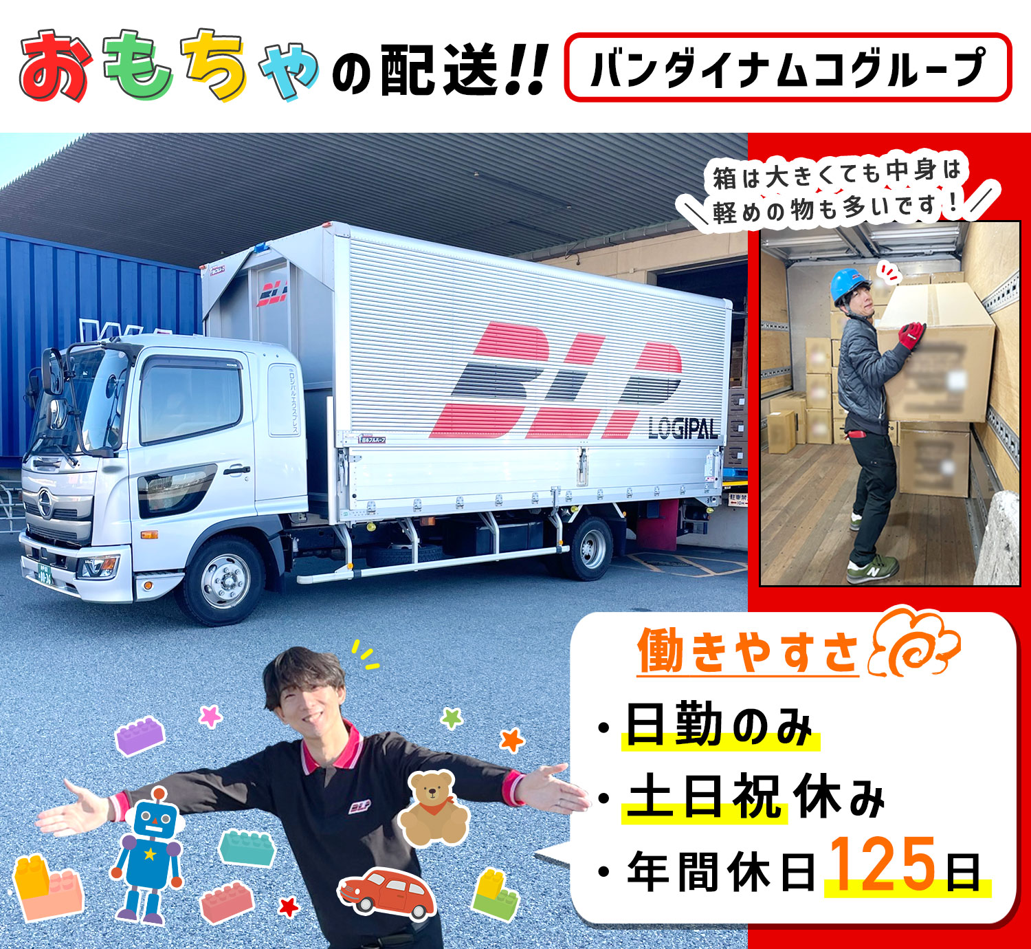 おもちゃやぬいぐるみ・アミューズメント用品をお届けするドライバーを大募集!