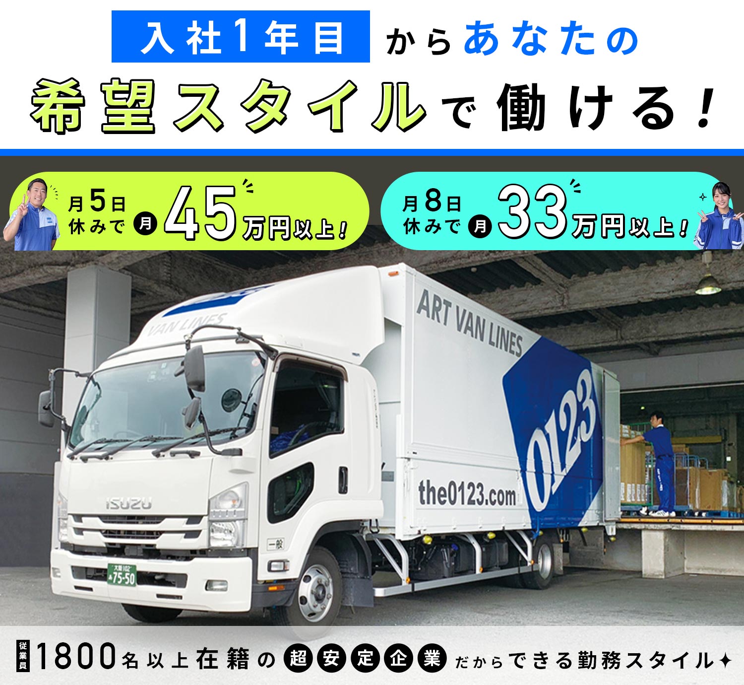 | 職 種 | 4tドライバー[社] (1)月8~9日休み (2)月4~5日休み |