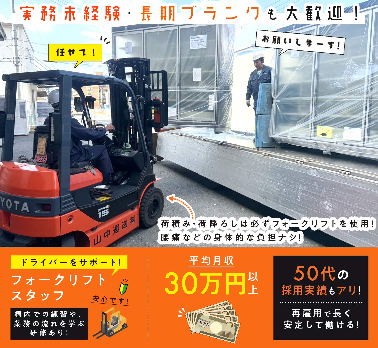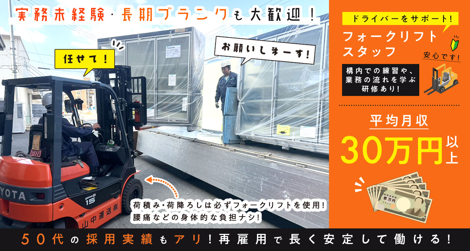 | 応募資格 | 要フォークリフト免許 #ブランクOK ※免許取りたて・実務未経験OK |