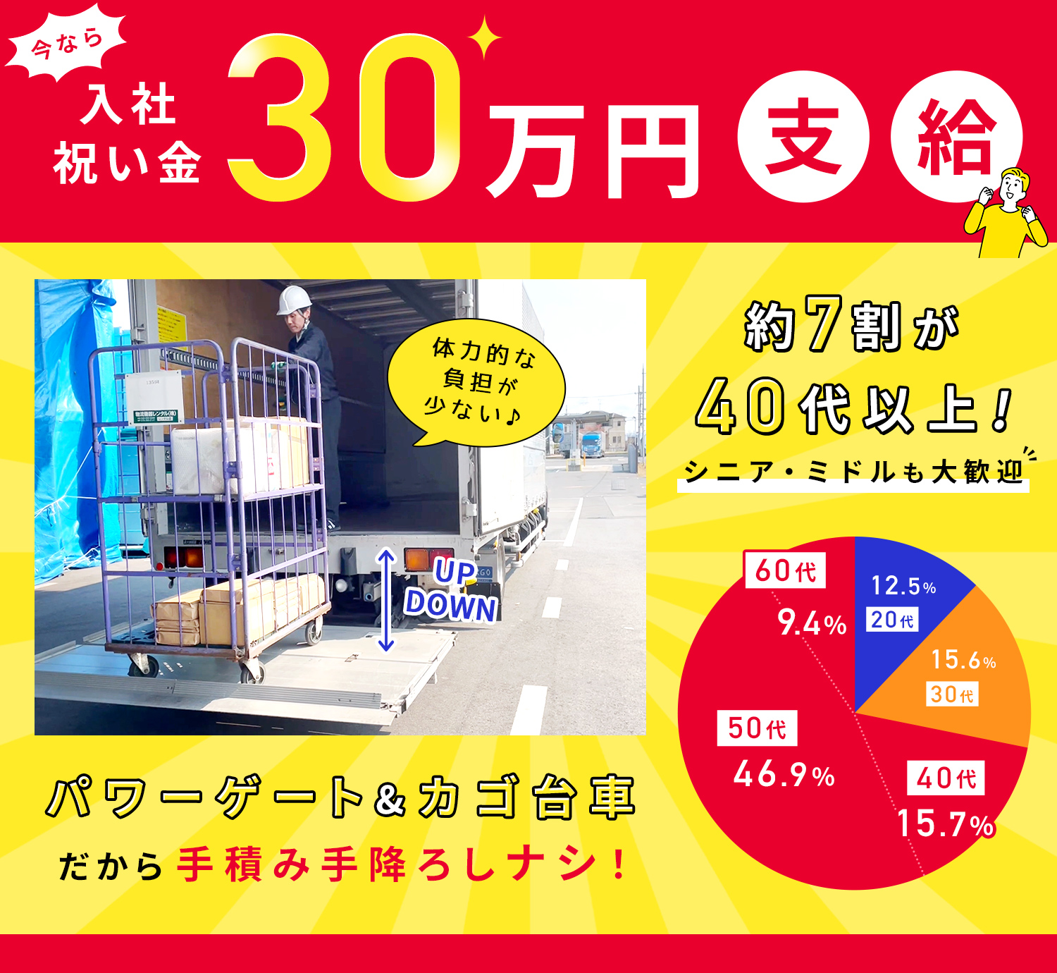| 仕事内容 | シニアやミドルも歓迎のドライバー/旧普通免許OK[社] 雑貨や日用品等を運ぶ、4トン車での地場・近距離配送(関西圏のみ)をお願いします。※荷役なし 配送は高速道路のみなので、ストレスフリーな運転が可能です。 ※1日2運行でOK ※固定ルート配送 ★手積み手降ろしナシで、カゴ台車を使用して荷物を運ぶので身体的負担も少ない! ★配送時間やルートが決まっているため待ち時間も少なめで、 自家給油設備(インタンク)を導入しており、給油もラクラクです◎ ★事故に伴う処罰や弁済、個人負担なし!(各種保険で対応致します) ★横乗り研修あり 経験を問わず、入社後はトラックの横乗り研修からスタート。 しっかりと先輩ドライバーが研修を行い、商品の扱い方やルートの確認、倉庫での動き方などを丁寧にお教えします! |