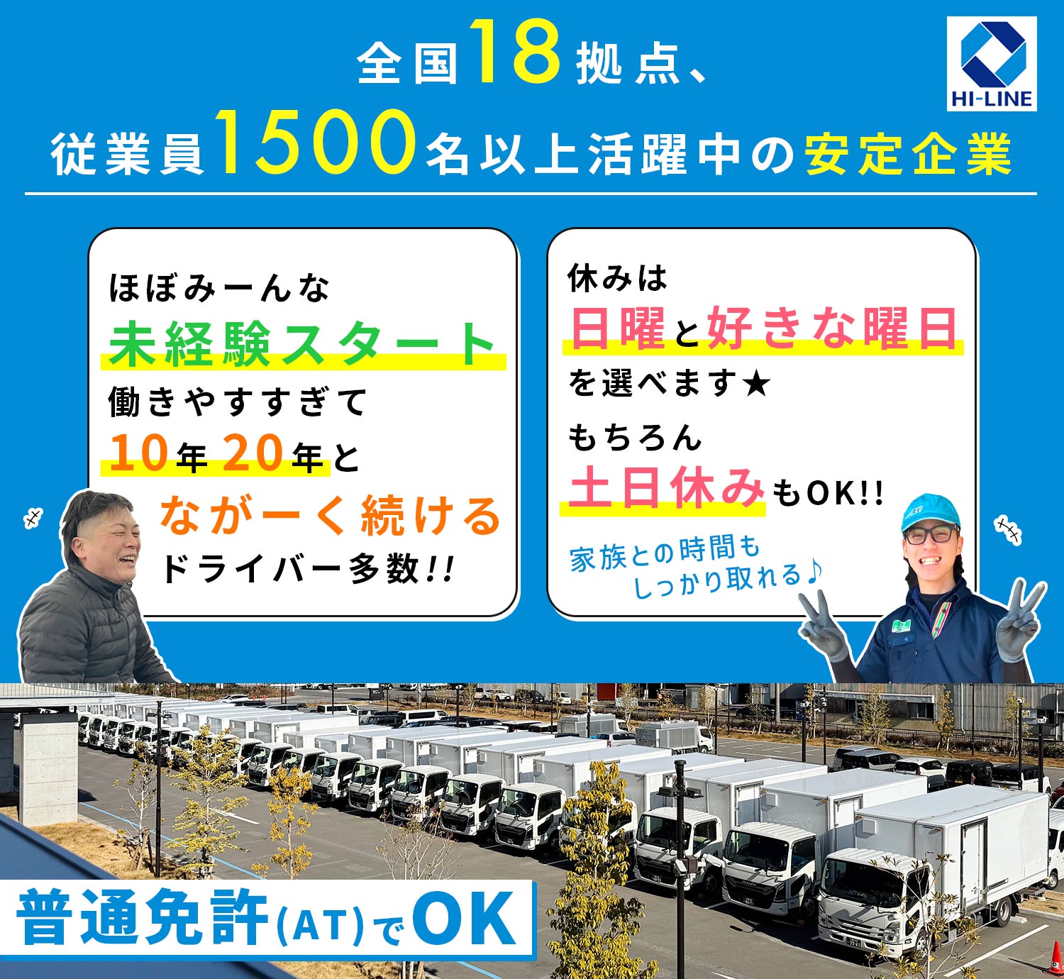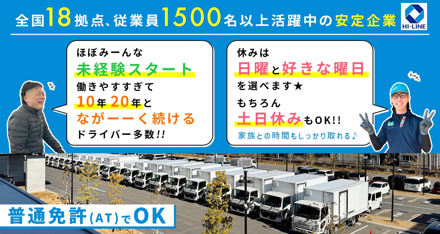 | 応募資格 | 要準中型免許以上 ※平成19年(2007年)6月2日以降に普通免許取得の方も応募可 #ブランクOK ※ドライバー未経験OK ※学歴・職歴不問 ※男女不問(女性ドライバーも活躍中) ※普通自動車免許をお持ちであれば、入社後に準中型以上の免許を取得いただくことも可能です(費用等会社負担※規定あり)。ぜひご相談ください。 |