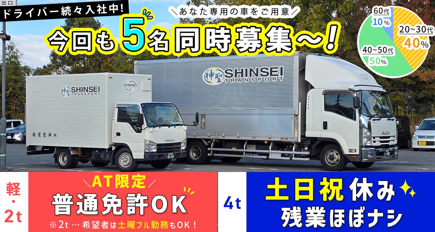 | 仕事内容 | 軽ドライバー/シニアやミドルも歓迎[社] 軽バン(AT限定OK)で一般雑貨などの集配送をお願いします。 ※荷物は軽いものが中心で、重くても1個10kg程度。 ※エリア:大阪南部の物流センターや店舗へ配送(再配送ナシ) <1日の流れ> 事務所に出社 ▼ 積み込み ▼ 大阪南部の物流センターや店舗へ配送(2~3往復) ▼ 配送終了後、退勤! ※軽量物が多いので男女ともに活躍可能! |