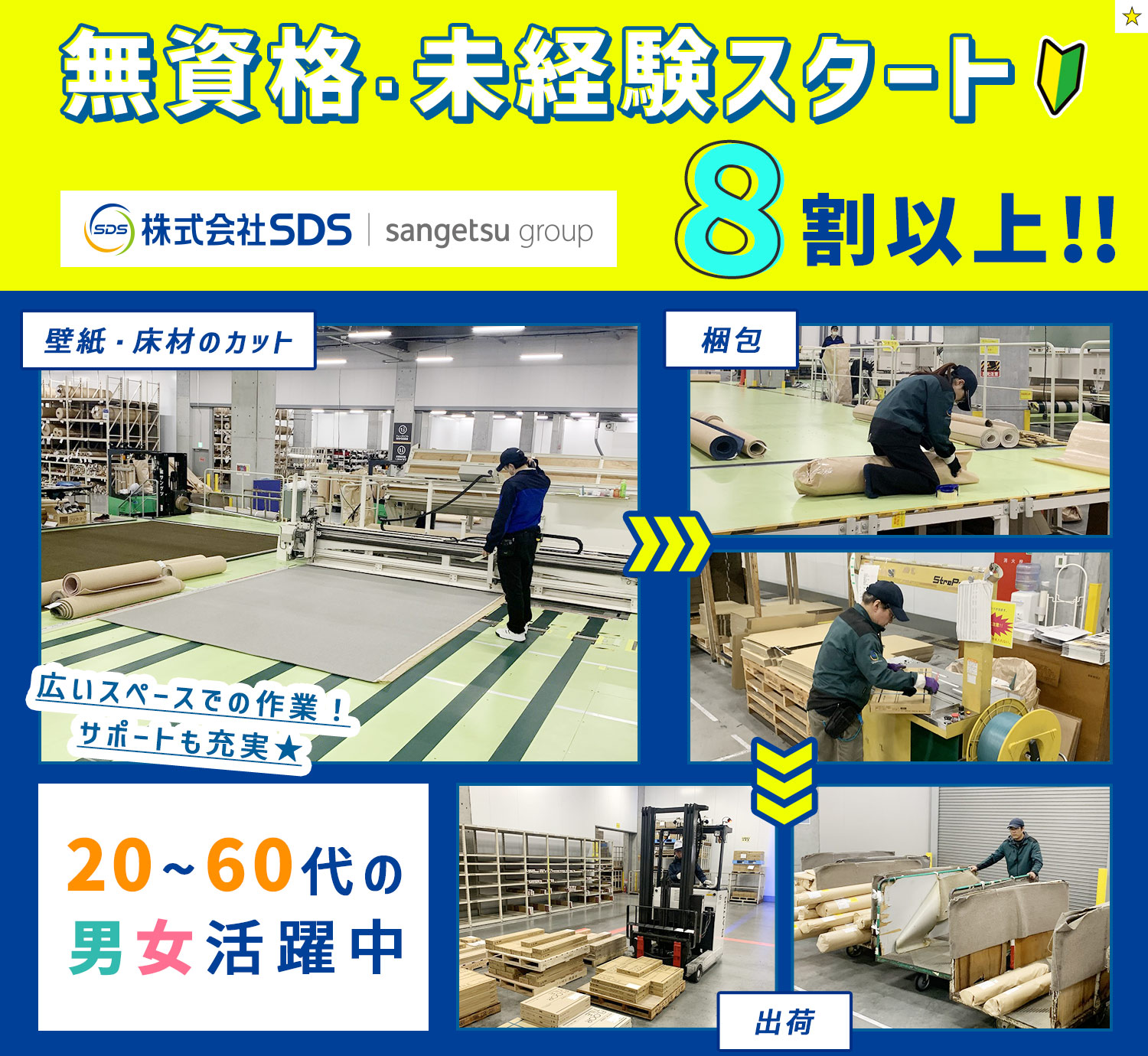 | 仕事内容 | 倉庫作業員/軽作業や事務等からも転職歓迎[社] サンゲツの配送センター内にて壁紙やカーテン、床材などを注文に応じてピッキング、センチ単位で加工をお願いします。 商品・注文内容に応じて指示書があるため、詳細な指示を確認しながらピッキング、加工・梱包を進めます。 女性作業員も活躍しており、働きやすい環境が整っています。 ※商品棚への商品の荷受け・荷出しは、フォークリフトで行いますが、 経験とテクニックが必要となる業務ですので、安全第一で、徐々に慣れていただくイメージです。 ◆未経験の方も安心!先輩の8割以上が無資格・未経験でのスタート! 入社後はOJT研修があり、出荷責任者の先輩スタッフが構内のルール、商品ごとの特性、具体的なピッキング方法まで1つずつお伝えします。 |