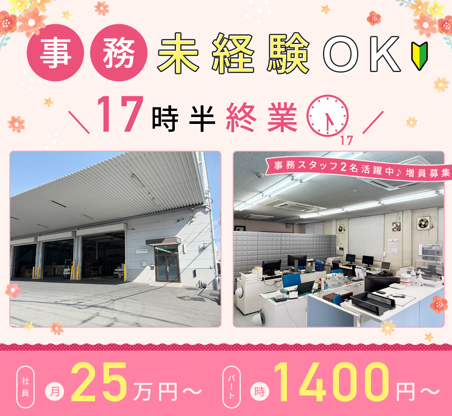 時給1400円以上での採用と、一般事務募集では高めの給与設定!