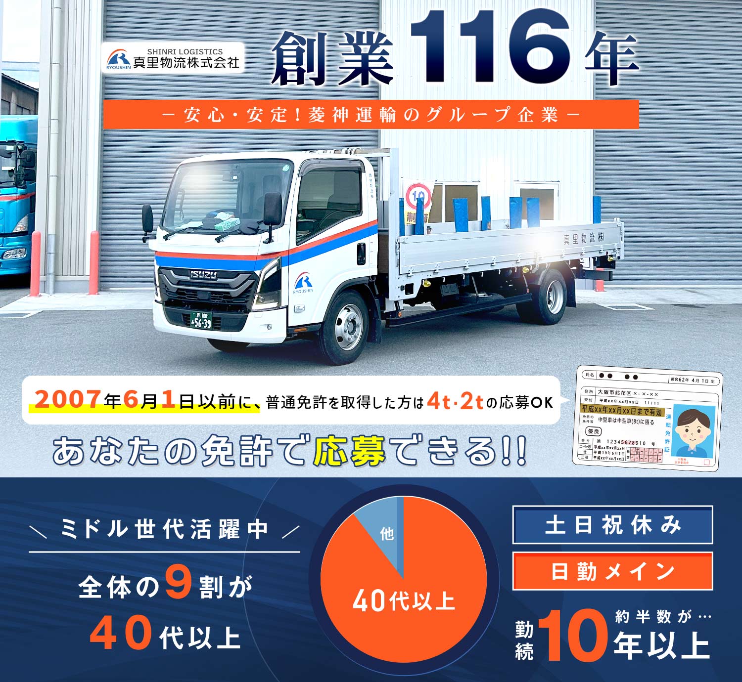 2007年6月までに普通免許を取得された方は、お持ちの免許で応募OK!
