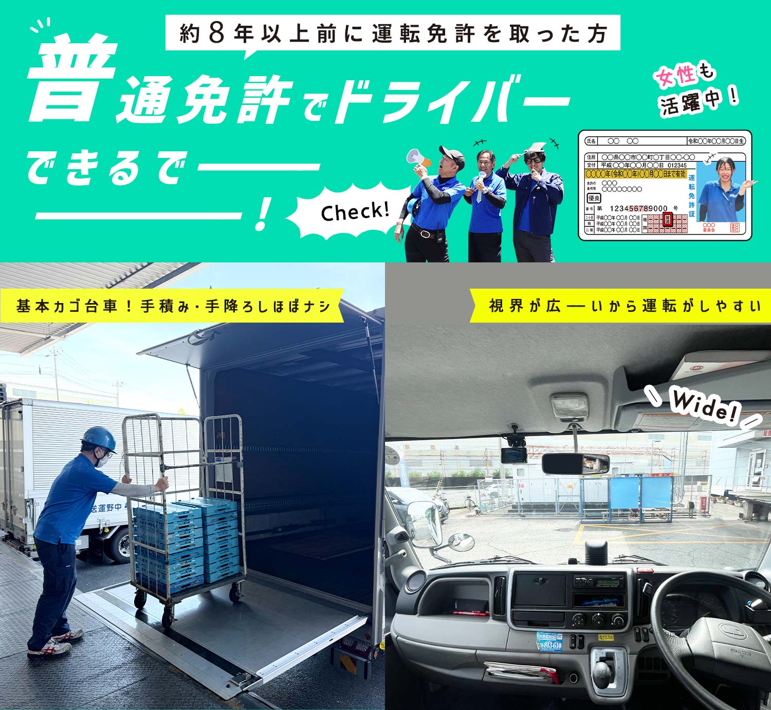 | 応募資格 | 要普通自動車免許(MT) ※AT限定の方も、ご相談ください ※平成29年(2017年)3月12日以降に取得された方は、要準中型免許(中型免許取得支援あり) ※未経験OK!異業種からの転職も歓迎 ※男女OK ※60歳定年のため、60歳未満の方(定年後再雇用制度あり) |