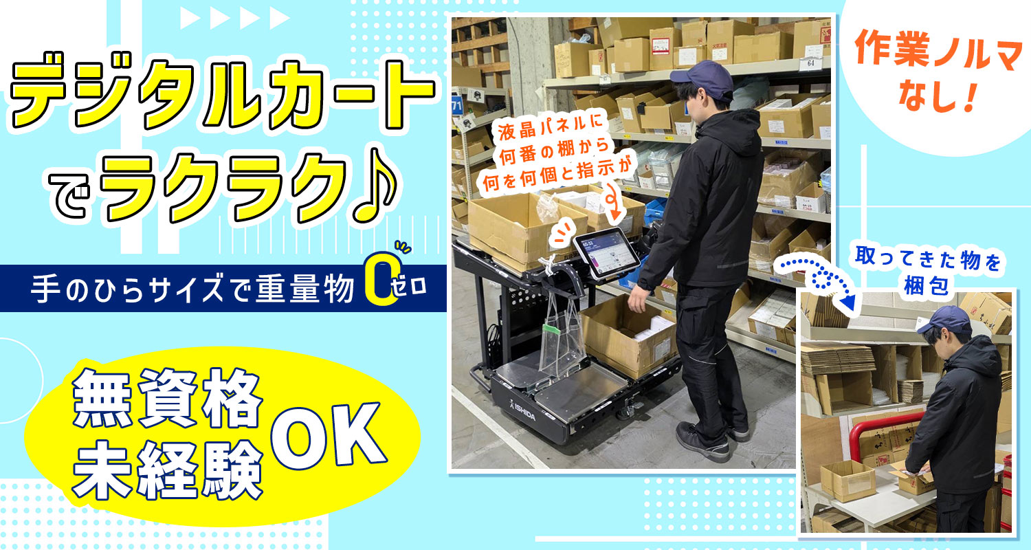 | 仕事内容 | 軽作業・仕分け・梱包/シニアやミドルも歓迎[パ] 化粧品のピッキング・梱包などをお願いします。 ピッキング作業については、デジタルカートを使用します。 ピッキングカートの液晶パネルに「何番ロケから、なにを、何個」と 表示されるので、指図に従いピッキングし箱に入れていきます。 片手サイズの化粧品を扱うため、重量物も無く、安心してお仕事スタートできます! 梱包作業については、ピッキング完了後の箱から発送専用の箱に商品の養生をしながら入替梱包していきます。 個人差はありますが、ピッキング作業は当日から独り立ちできますし、梱包も1~2週間程度である程度慣れていただけると思います! 作業ノルマはないので、勤務時間内でモクモクと作業を進められるのも人気です! |