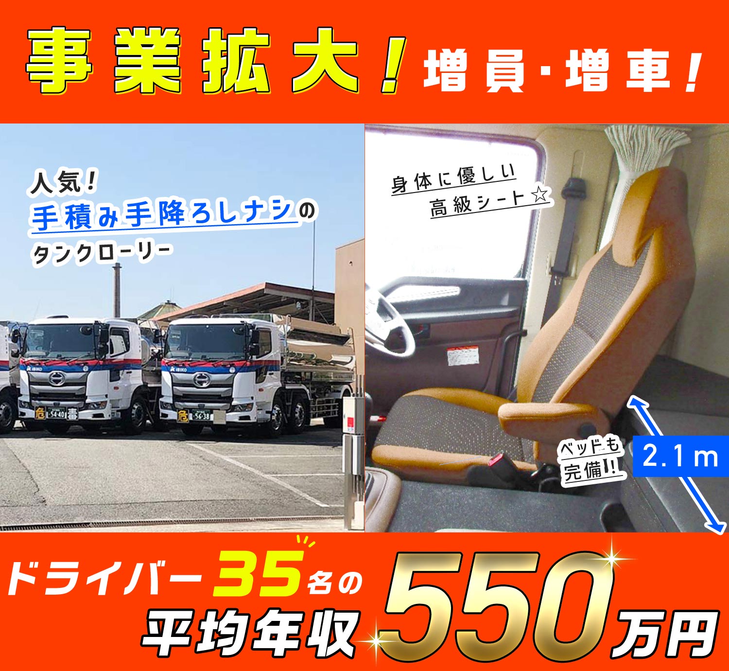 | 職 種 | タンクローリードライバー[社] (大型免許取得見込みの方もOK) |