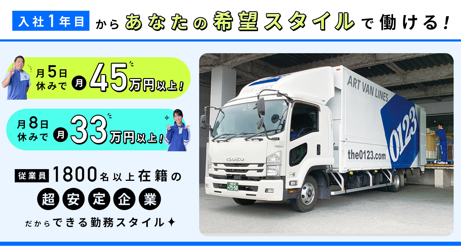 | 職 種 | 4tドライバー[社] (1)月8~9日休み (2)月4~5日休み |