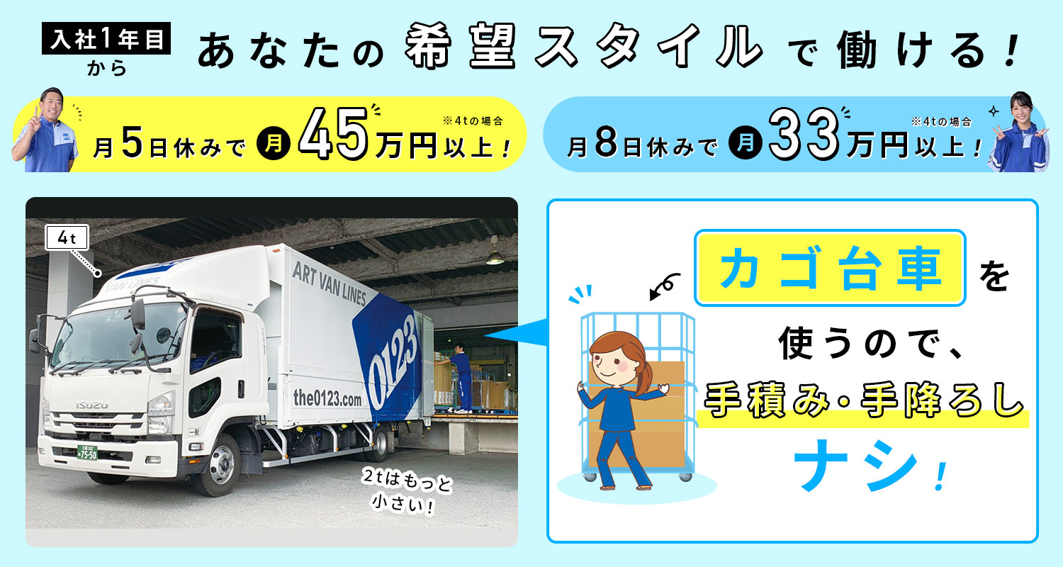 | 給 与 | (1)月給33万円~46万8000円以上 (2)月給31万7000円~37万7000円以上 ※別途、業績給(売上に応じた割増賃金)・家族手当・無事故手当等あり ◆月24日稼働で、(1)月収42万円以上(2)月収34万円以上のドライバーも!(働き方は相談OK) ◆1年目の想定年収600万円! ※試用期間3~12ヶ月(平均3ヶ月)/期間中は契約社員(賞与なし・それ以外は正社員と同条件) ※期間中も【平均月収25~30万円】と安定! |