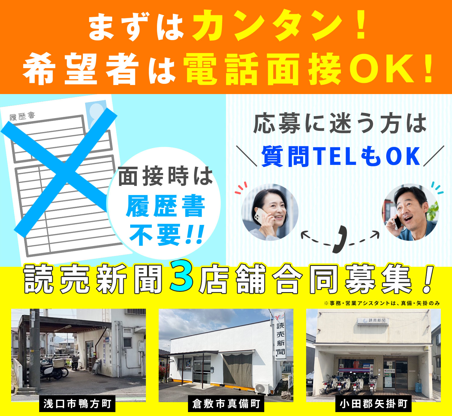 | 仕事内容 | 営業アシスタント/事務経験者歓迎[パ] 新聞販売店での、電話対応、書類整理をはじめ、軽自動車(箱バン)を運転し、営業スタッフの送迎や、ポスティング等をお願いします。 ※営業スタッフの送迎の詳細(週1回程度) ・軽バンを運転し、営業スタッフを乗せ、行き先を案内(あなたに案内用の地図・リストをお渡しします。携帯アプリも使用OK) ・営業スタッフが営業活動をしている間は、車の中で基本待機! ★外に出て、お客様対応がメイン! 新聞の契約更新のご案内など。とても簡単ですし、ノルマもありません! ★仕事内容自体は、シンプルで簡単ですが、始業から終業まで日々変化があるため、流れ作業や、毎日決まった仕事だけをこなすのが嫌な方に、オススメです! ★コミュニケーションが多いので、人と話をするのが好きな方、とても向いてますよ!お店の顔となるポジションなので、地域貢献を実感できたり、顔なじみのお客様が増えてくると、感謝の言葉を直接頂けることも多く、とてもやりがいを持って働けます! ★子育て復帰の方や、長期の仕事ブランクがある方も、大丈夫! イチから丁寧にお教えしますし、地域密着の仕事なので、道も覚えられます!実際に、子育てにより長期ブランクがあった方も、当店で大活躍しています! <同時募集> 安定して正社員を希望される方は、ご相談ください。定年がないので、長く活躍いただけます!また、読売新聞は全国紙なので、他店と交流もあります! |
