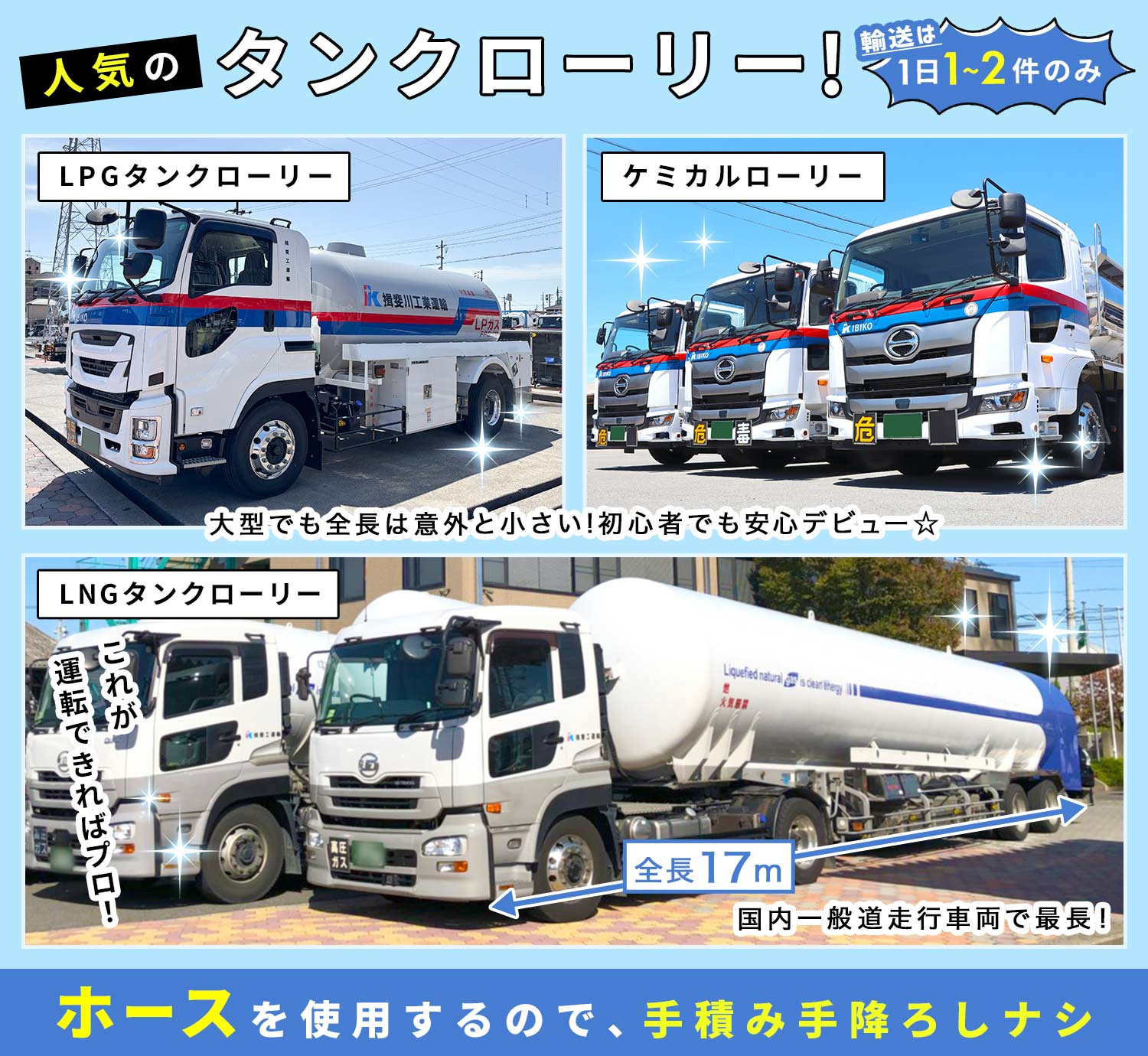 ★LNGタンクローリー班の平均年収550万円!(昨年実績)