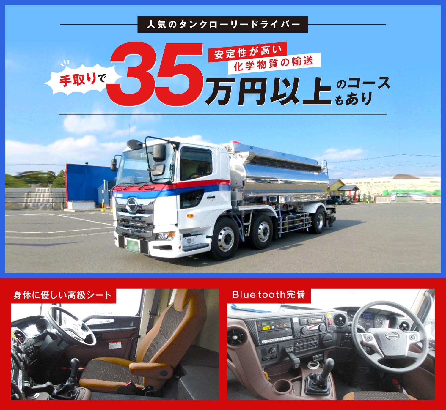 仕事内容 | 大型ドライバー/タンクローリー[社] タンクローリーを運転し、関東圏の工場をメインに化学品の輸送業務をお願いします。 ※手積み・手降ろし一切ナシ!さらに復路は、空のまま運転して帰ってくるので、荷積みの負担はありません! ■配送エリア 神奈川県川崎市、茨城県鹿嶋市・神栖市、千葉県市原市・市川市・船橋市など、関東圏への配送がメイン。 ■配送件数 基本的には1日1件 ※稀に2件以上お願いすることもあり ■快適なトラック! 社内はBluetooth完備!シートも、ソファー並みの座りごこちで、身体に優しいと好評!長距離を走る場合も、運転席の後ろにベッドがあるので、高速道路のPAでぐっすり寝ることができます◎ |
