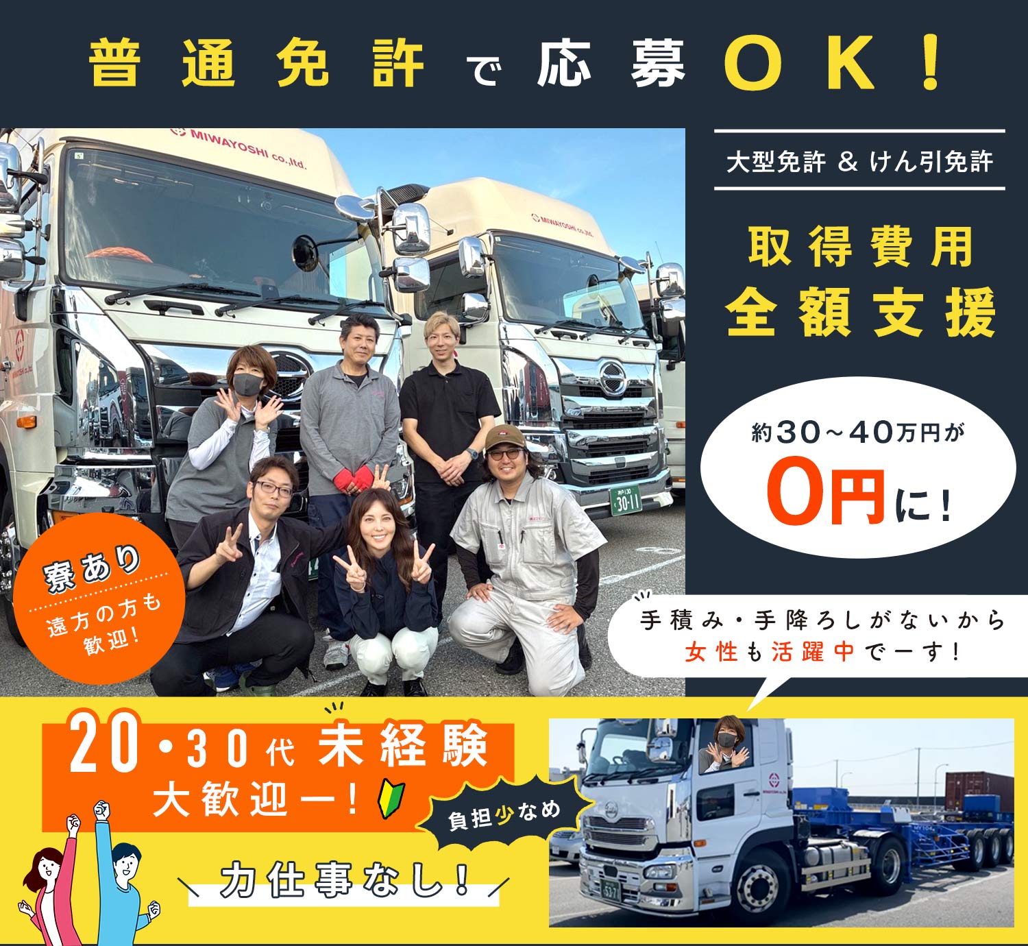 応募資格 | 普通自動車免許(MT)で応募OK/取得後3年以上の方 ※大型自動車免許・けん引免許をお持ちの方は尚可 業務には上記免許が必要ですが、無い方は入社後に免許取得支援制度で¥0で取得可能です! ※シニアやミドルも歓迎 ※男女ともに歓迎 ※学歴不問 |