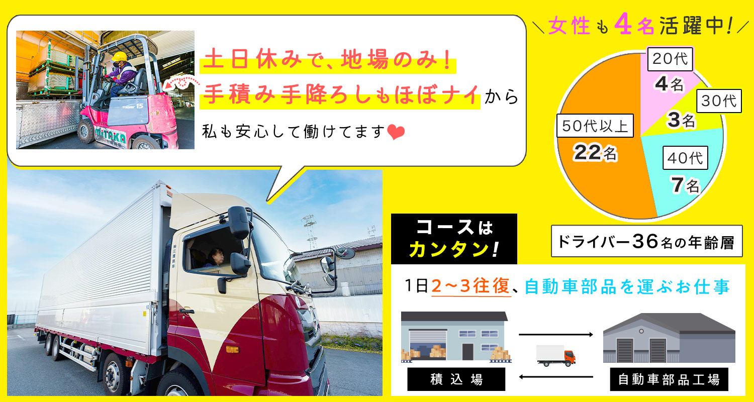 「積込場」⇔「自動車部品工場」を1日2~3往復!