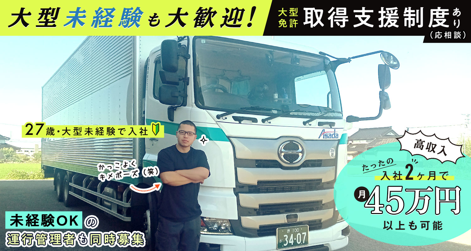 ※運行管理者・大型免許をお持ちの方や経験者の方は給与を優遇します!(詳細は面接にて)