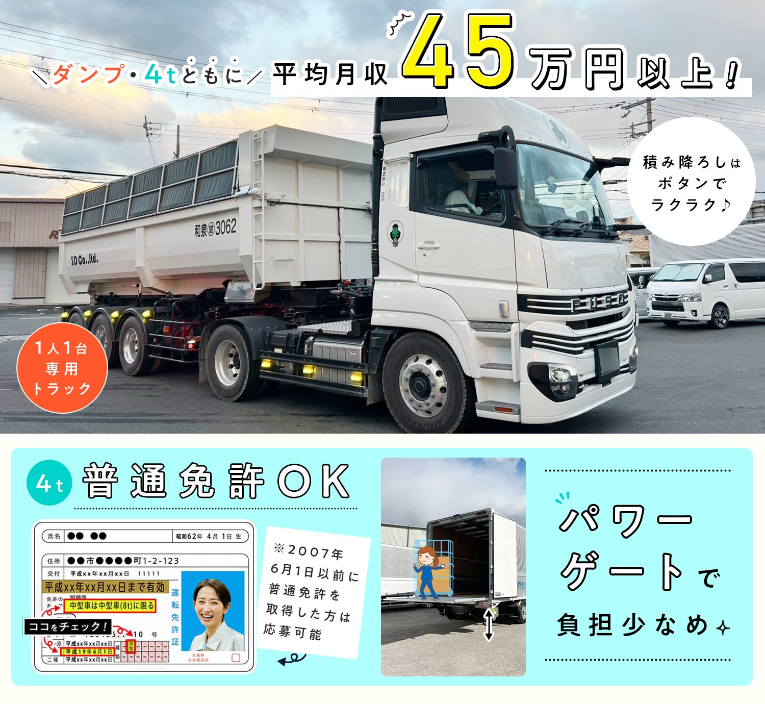 | 応募資格 | 要普通自動車免許 ※平成19年(2007年)6月2日以降に普通免許取得の方は要中型免許 ※ドライバー未経験の方、異業種からの転職も歓迎 ※男女歓迎、学歴不問 |
