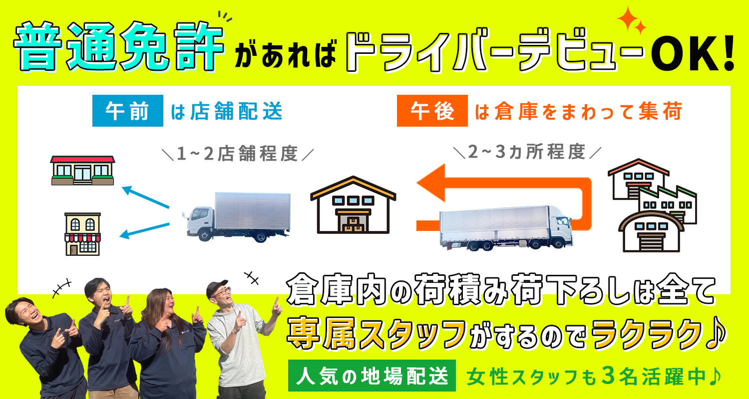 夜間や長距離の配送なしで、毎日帰宅可能!