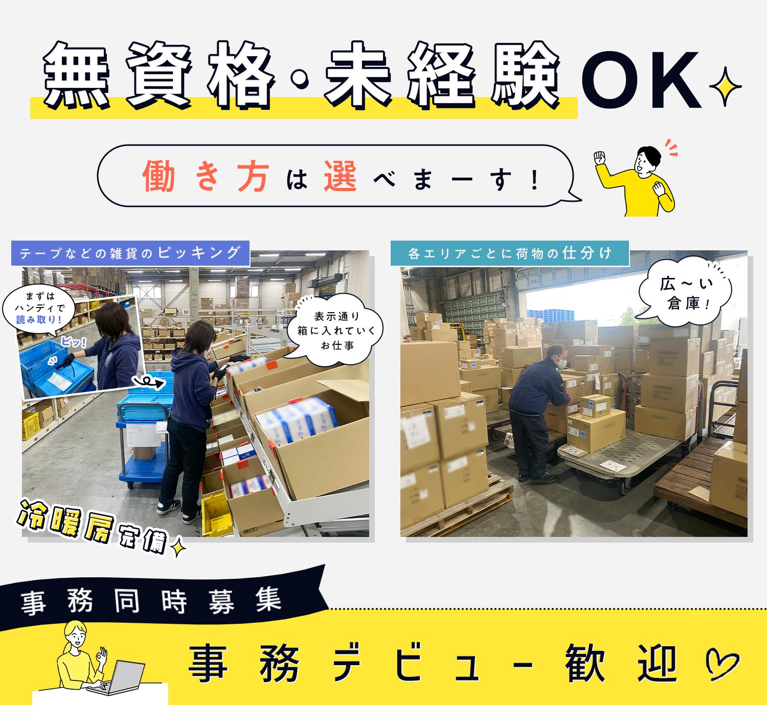 | 応募資格 | 無資格・未経験OK 事務デビューOK #ブランクOK ※異業種(営業・販売・飲食・事務等)からの転職も歓迎 ※年齢不問(シニアやミドルも歓迎) ※契約期間:1年毎の原則更新、更新上限なし |