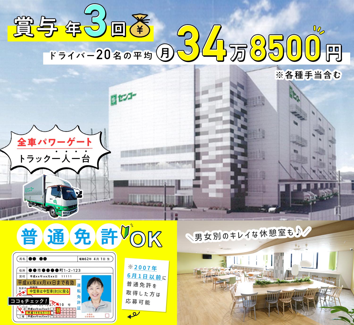泉南営業所のドライバー20名の平均月収34万8500円!※各種手当含む
