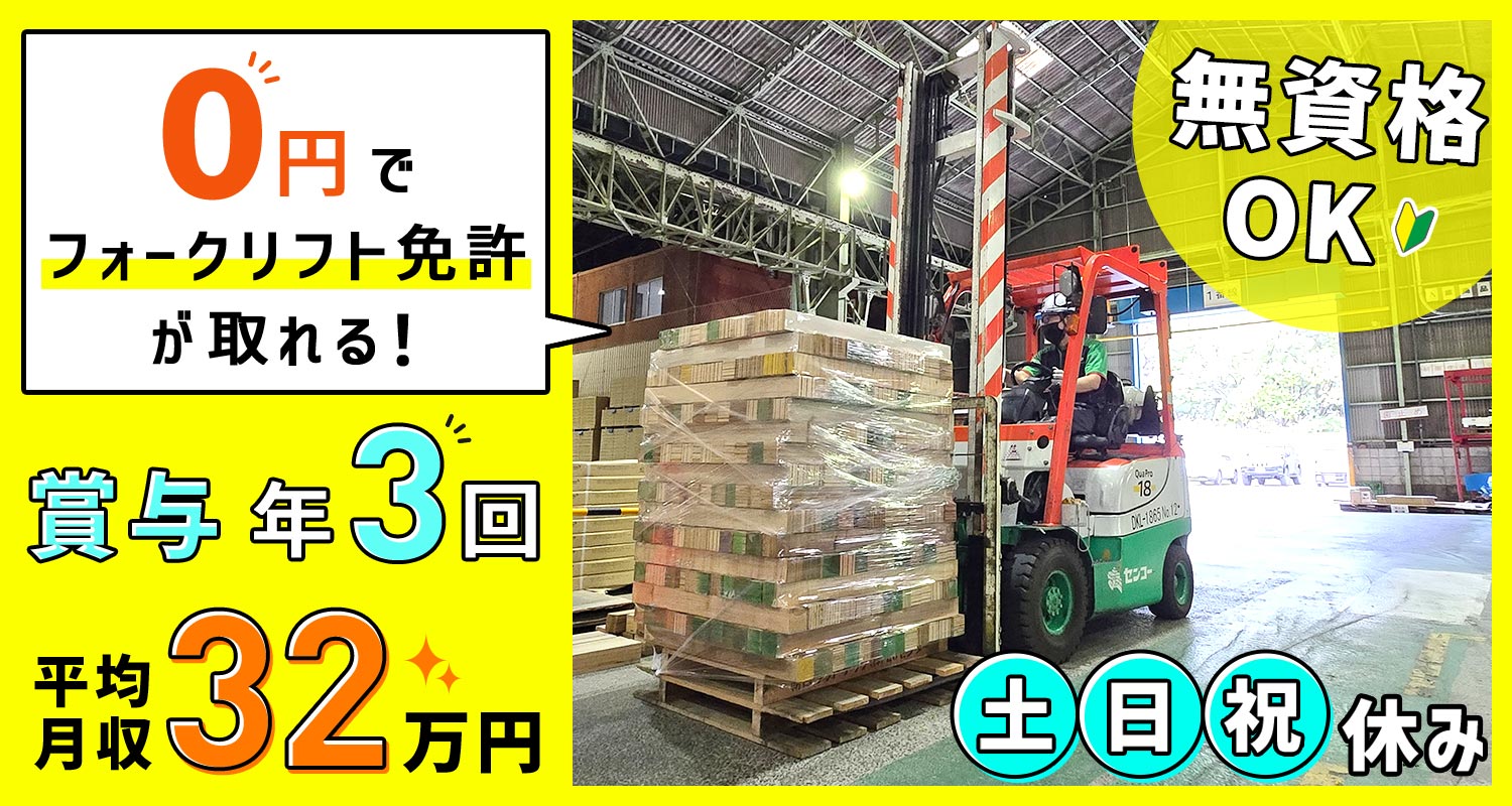 フォークリフト免許は入社後に取得可能!※会社全額支援